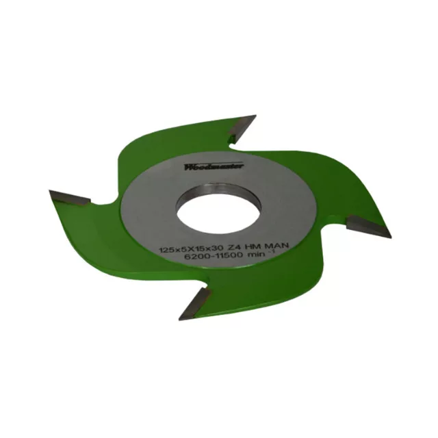 Fréza na spoje s priemerom 125 mm, hrúbkou 5 mm, maximálnou hĺbkou 15 mm, 4 nožmi, SK, so spájkovanými doštičkami a vnútorný priemer 30 mm. Frézovacia hlava Woodmaster priemyselnej kvality na drevo s karbidovými (vidia) zubami Tigra Germany.