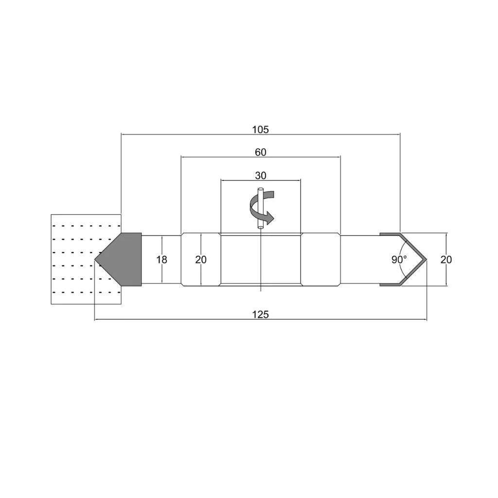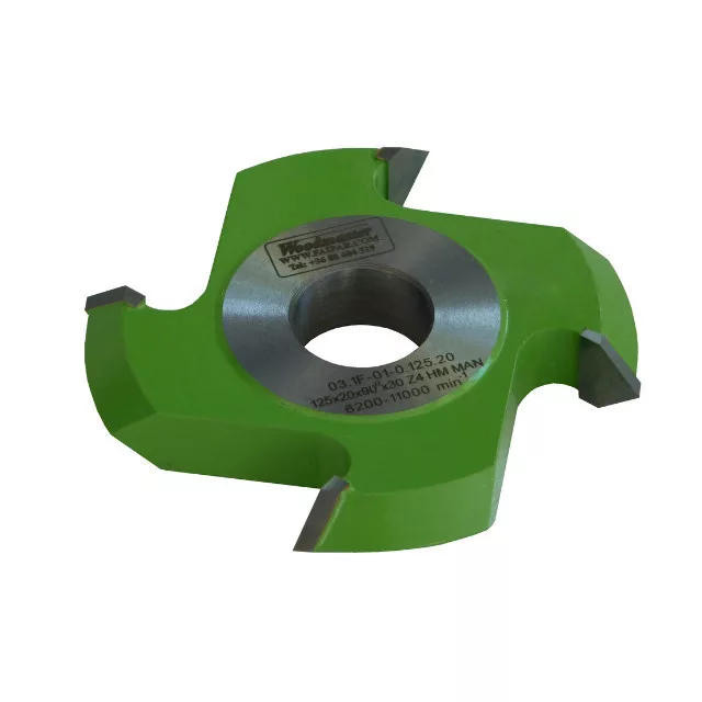 Fréza uhlová 90° s priemerom 125 mm, hrúbkou 20 mm, 4 nožmi, SK, so spájkovanými doštičkami a vnútorný priemer 30 mm. Frézovacia hlava Woodmaster priemyselnej kvality na drevo s karbidovými (vidia) zubami Tigra Germany.